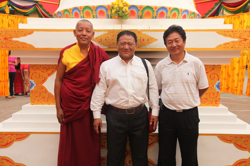 The main responsibility for the construction works holds Jimba Lordö, one of Kyabje Tenga Rinpoche’s main attendants (on the right side of the picture) supported by Tempa Yarphel, Tenga Rinpoche’s Chagdzö (in the middle of the pic.)